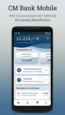 Descoperiți aplicația Mobile Banking de la Cooperative Bank of Central Macedonia. Oferă acces convenabil și sigur la conturile dumneavoastră, direct de pe telefon. Gestionați-vă finanțele cu ușurință, oriunde v-ați afla.