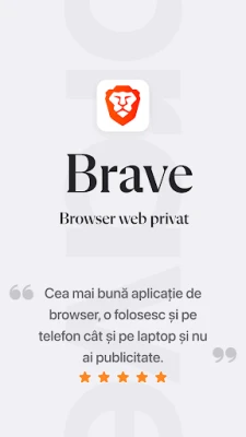 Experimentați navigarea pe web la un nou nivel cu **Browserul Web Brave**. Proiectat pentru Android, oferă o experiență online excepțional de rapidă, sigură și respectuoasă cu confidențialitatea. Spuneți adio intruziunilor digitale, mulțumită unui sistem inteligent care blochează reclamele intruzive și ferestrele pop-up, protejându-vă de urmăritori și amenințări invizibile. Cu **Browserul Web Brave**, internetul devine mai curat, mai rapid și, mai presus de toate, mai sigur pentru dumneavoastră, fără necesitatea unor setări complicate.