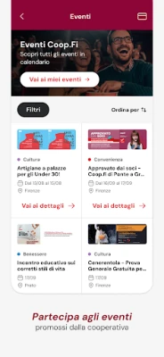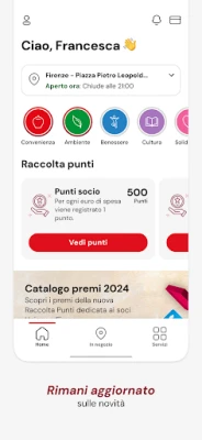 Experiența ta în magazin este îmbunătățită prin funcționalități precum serviciul „Tocca a Te", iar istoricul bonurilor de cumpărături este accesibil tuturor clienților, chiar și non-membrilor, prin simpla utilizare a codului de client la casă. Descoperă catalogul extins de premii, înscrie-te la evenimente exclusive și explorează multiplele posibilități pe care aplicația le oferă. În plus, procesul de aderare la statutul de membru al Cooperativei este simplificat, deschizând accesul către un spectru complet de avantaje. Coop.fi este proiectată pentru a fi intuitivă și rapidă, oferind o experiență de utilizare fluidă și accesibilă, atât pentru membrii Unicoop Firenze, cât și pentru clienții fideli. Pentru a afla mai multe, vizitează www.coopfirenze.it.