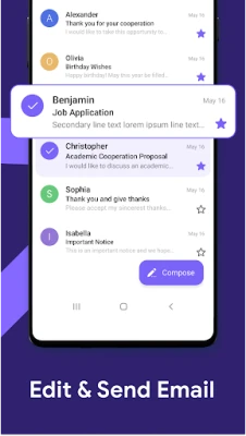 Conceput pentru productivitate maximă, Email Lite îți oferă instrumente avansate pentru a vizualiza, procesa și organiza rapid fiecare mesaj. Funcționalitățile de căutare inteligentă și gestionare intuitivă îți permit să sortezi și să răspunzi cu ușurință, transformând o sarcină complexă într-una fluidă. Mai mult, cu notificările instantanee, vei fi mereu la curent cu noile mesaje, asigurându-te că nu vei rata niciodată informații cruciale. Nu mai este necesar să verifici constant inbox-ul, deoarece Email Lite te ține informat în timp real, eliberându-ți timp prețios.