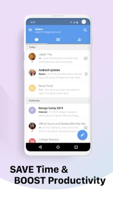 MailTime: Secure Email Inbox transformă emailul într-o experiență simplă, ca SMS-urile. Organizează-ți inbox-ul și eliberează-te de aglomerație. MailTime AI, asistentul tău inteligent, generează răspunsuri contextuale și personalizate, cu opțiuni de ton și lungime, simplificând comunicarea zilnică și afacerile.