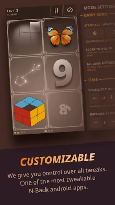 Prin angajarea în provocarea N-Back, **N-Back Evolution** stimulează creierul să proceseze și să actualizeze constant informații, fortificând acele circuite neuronale responsabile de inteligența fluidă și de capacitatea memoriei de lucru. Mulți utilizatori raportează o serie impresionantă de avantaje: de la o comunicare mai fluentă și o înțelegere mai bună a lecturilor, până la o concentrare sporită și abilități de studiu îmbunătățite. Vei observa progrese în gândirea logică și analitică, vei asimila mai ușor limbi noi și chiar vei excela în activități precum muzica sau șahul, toate acestea contribuind la o versiune mai ascuțită și mai adaptabilă a ta.