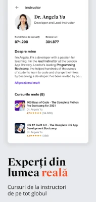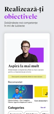 Visezi la un viitor profesional strălucit, fie că îți dorești să excelezi în tehnologie, să-ți redefiniști cariera sau să-ți perfecționezi abilitățile esențiale de leadership, afaceri și comunicare? Cu Udemy, transformarea aspirațiilor tale în realitate devine un proces dinamic și adaptabil. Platforma îți oferă un ecosistem complet pentru dezvoltarea continuă, croind un parcurs personalizat ce evoluează odată cu obiectivele tale. De la cursuri aprofundate livrate de experți recunoscuți din diverse industrii, la simulări interactive de rol facilitate de inteligența artificială, care îți permit să exersezi scenarii din viața reală, precum gestionarea conflictelor sau colaborarea eficientă, vei acumula nu doar cunoștințe, ci și competențe gata de aplicat.