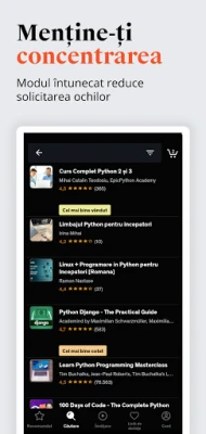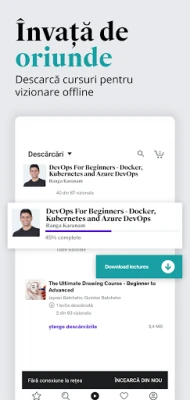 Experiența de învățare cu aplicația Udemy este proiectată pentru flexibilitate și eficiență maximă. Poți accesa conținutul preferat chiar și offline, îți poți proiecta cursurile pe un ecran mai mare prin Chromecast sau poți studia confortabil în Modul Întunecat. Notificările personalizate te mențin conectat la progresul tău, iar funcțiile de notițe, marcaje și chestionare rapide te ajută să consolidezi informațiile esențiale. Ai libertatea de a relua oricând materialele studiate datorită accesului pe viață și beneficiezi de clarificări directe de la instructori, prin sesiuni de întrebări și răspunsuri. Angajamentul instructorilor noștri de a actualiza constant materialele asigură că vei deține mereu cele mai relevante și căutate competențe pe piața muncii, transformând timpul petrecut aici într-o investiție strategică în adaptabilitate, evoluția carierei și succes.