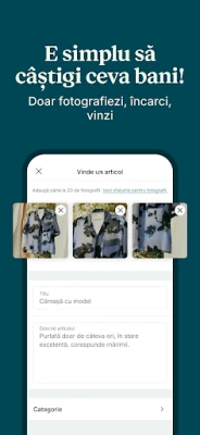Descoperă o nouă modalitate de a da viață articolelor pe care nu le mai folosești. Cu Vinted, vânzarea este intuitivă și complet lipsită de costuri suplimentare. Pur și simplu fotografiază, descrie și stabilește prețul pentru articolele tale, de la modă la electronice și obiecte de uz casnic. Păstrezi fiecare bănuț din ceea ce câștigi – 100% din suma convenită îți aparține. Urmărește-ți cu ușurință încasările și transferă-le direct în contul tău bancar, în timp ce Vinted simplifică procesul de livrare prin etichete preplătite, costurile fiind suportate de cumpărător.