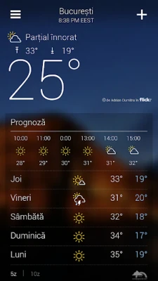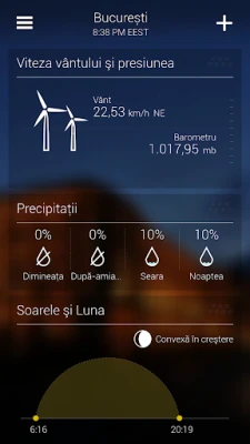 Personalizați-vă experiența cu widgeturi noi și inteligente, care aduc informațiile esențiale direct pe ecranul principal. Lăsați-vă inspirat de module animate ce ilustrează orele exacte ale răsăritului și apusului, sau monitorizați cu ușurință direcția vântului și presiunea atmosferică. Obțineți date relevante despre umiditatea aerului, indicele de radiații UV și șansele de precipitații. Navigarea este concepută pentru simplitate: o glisare verticală dezvăluie detalii aprofundate, în timp ce o mișcare orizontală vă permite să parcurgeți rapid locațiile favorite. Un aspect unic al acestei aplicații este galeria sa de fotografii, îmbogățită constant de o comunitate globală de utilizatori, transformând fiecare prognoză într-o operă de artă colectivă.
